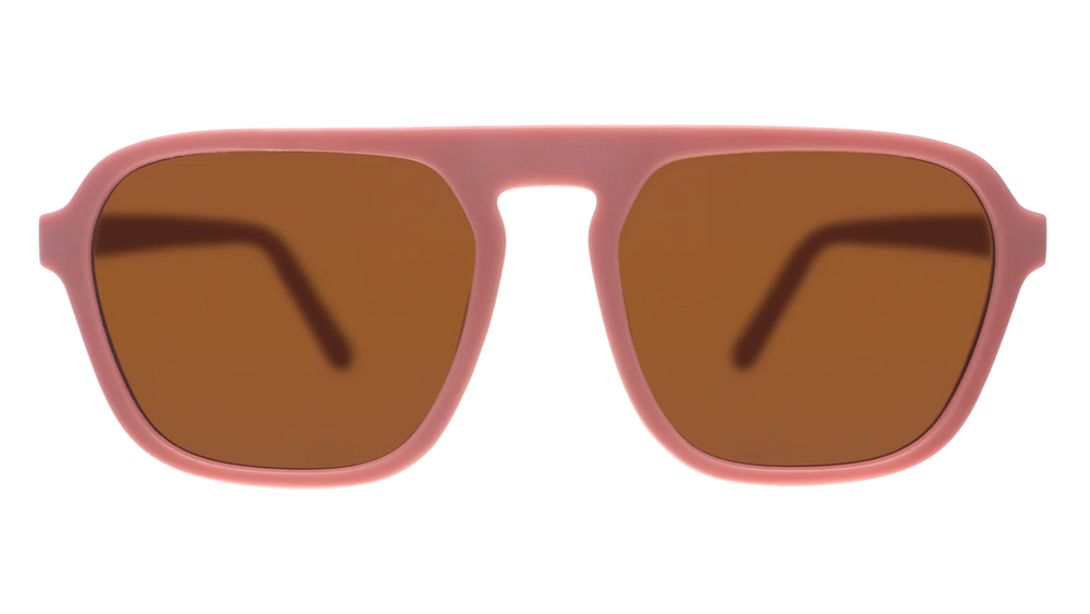 Threaten everyone with a good time with these light pink vintage-inspired square aviator frames with brown, non-reflective lenses. Won't slip or bounce while you hustle at the roller rink like it's 1979. It's like everything is new again.
