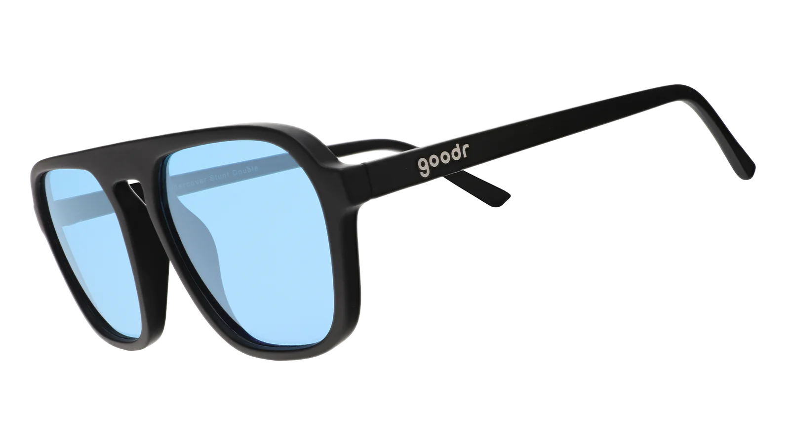 These black square aviators, with their blue non-reflective lenses & retro vibes, will have you nonchalantly sauntering around with the 'tude of a stray hepcat. No one'll be the wiser that you spend your days jumping out of windows & dodging flames.