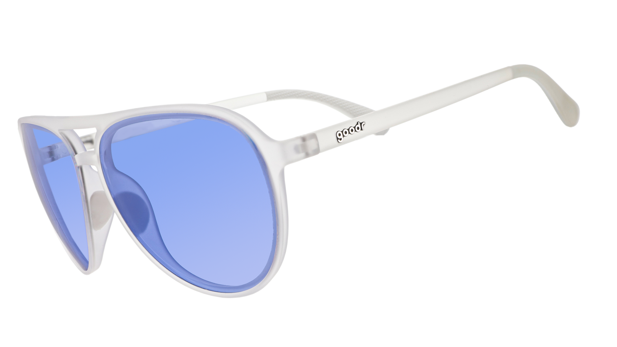 Go against the grain with sparkling jewel-tone sunglasses! These fashion-forward clear aviator frames feature purple-blue gradient non-reflective lenses. Perfect for low light conditions & standing out in a crowd. Go ahead, flaunt your Family Jewels.
