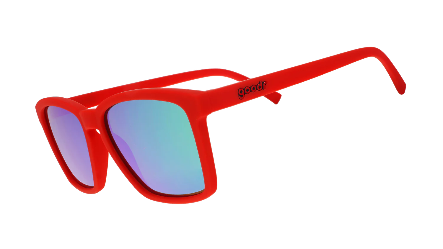 Spice up your style with hot sauce sunglasses! These red frames feature green reflective polarized lenses & sizzling custom packaging. Part of our limited-edition Carl's Diner line celebrating comfort food. As the saying goes: always wear condiments.